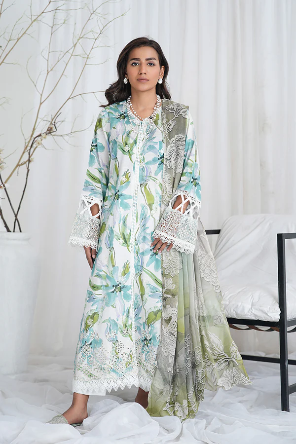 Chikankari + Lawn With Printed Bamber Chiffon Dupatta