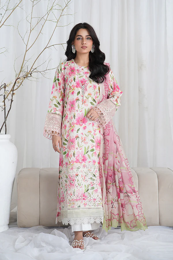 Elevate your wardrobe with the refined charm of JH-833-AFR, a beautifully crafted Pakistani lawn ensemble that blends the delicate art of Chikankari embroidery with graceful digital prints. Designed for the modern woman who appreciates heritage, comfort, and timeless fashion.