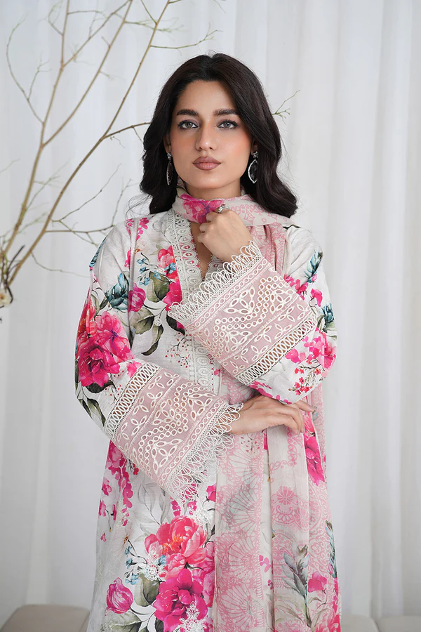 Chikankari + Printed Lawn With Printed Bamber Chiffon Dupatta
