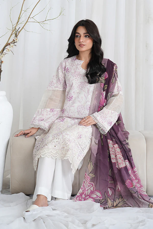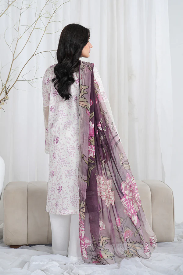 Chikankari + Printed Lawn With Printed Bamber Chiffon Dupatta