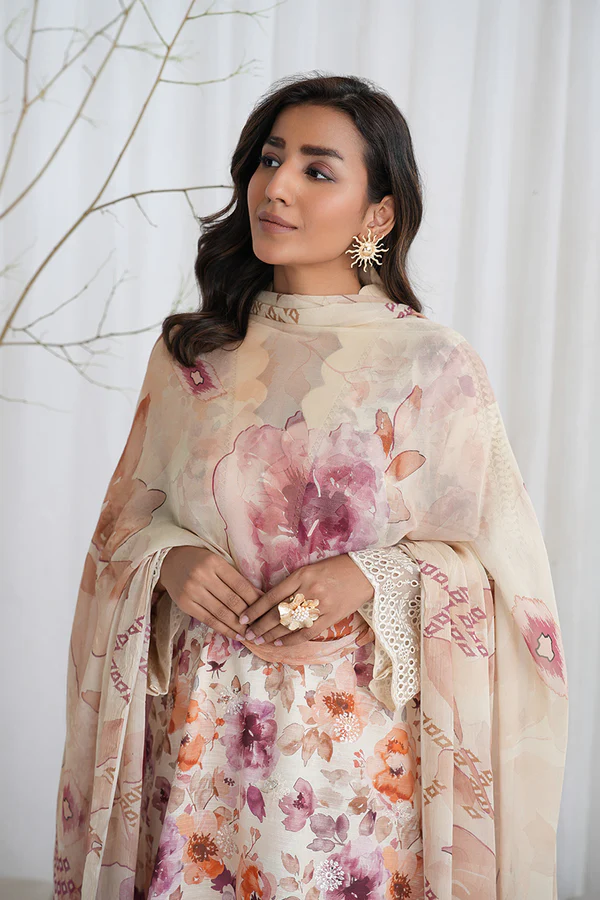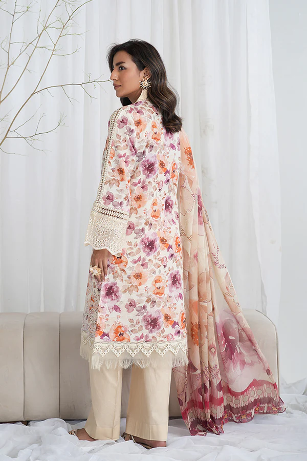 Chikankari + Printed Lawn With Printed Bamber Chiffon Dupatta