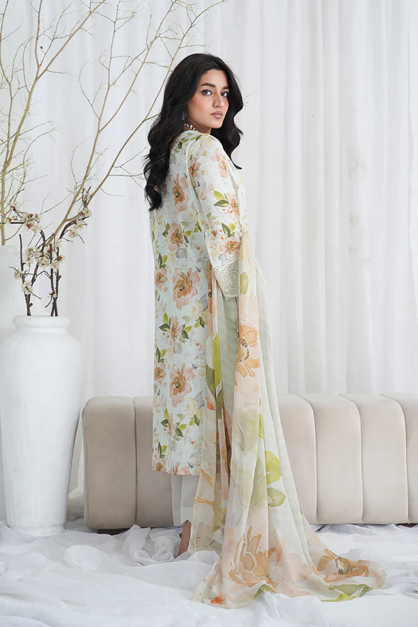 Introducing JH-841-AFR, a beautifully curated Pakistani Lawn 3-piece suit that celebrates the art of femininity, tradition, and effortless elegance. Featuring a delicate combination of Chikankari embroidery and artistic printed lawn, this ensemble is perfect for the woman who values cultural charm and modern sophistication.